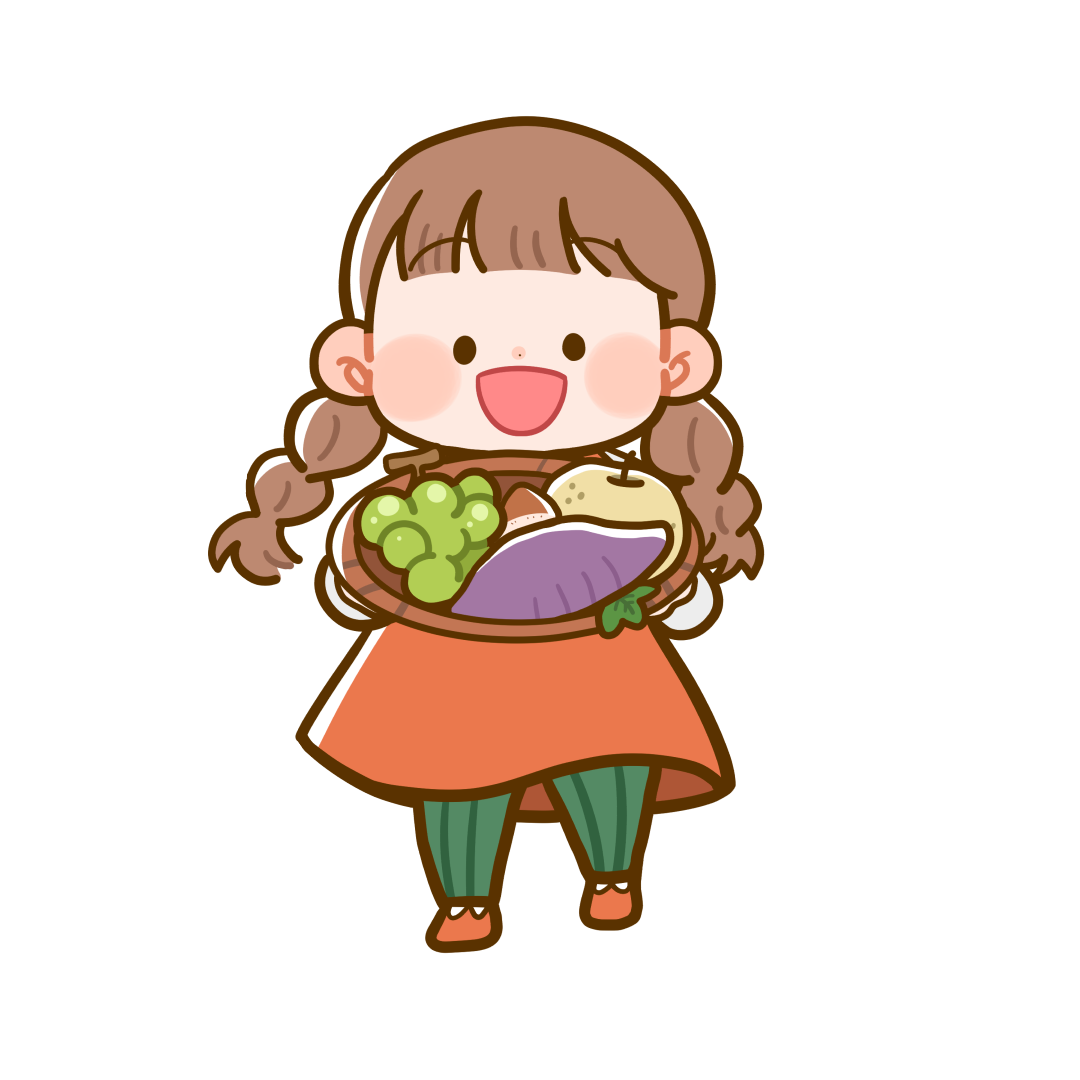 食欲の秋 秋の果物を持ったこどものかわいいフリーイラストです。