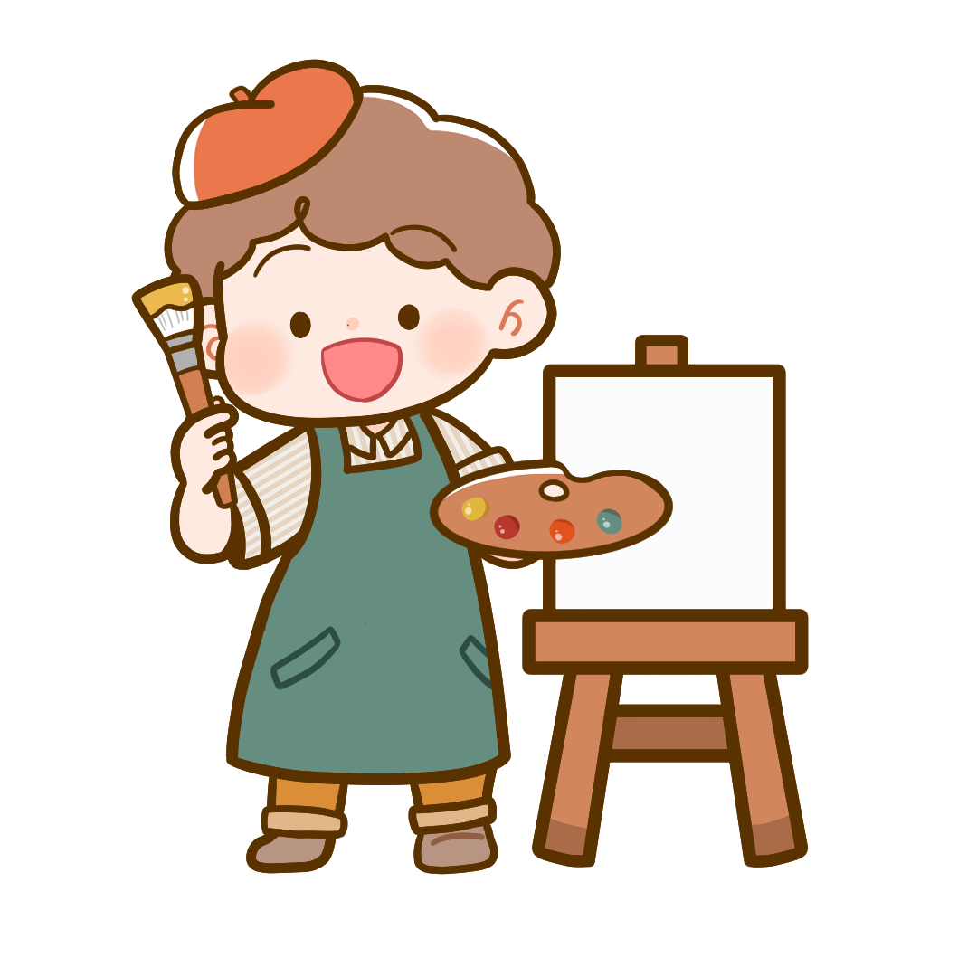 芸術の秋 絵を描くこどものかわいいフリーイラストです。