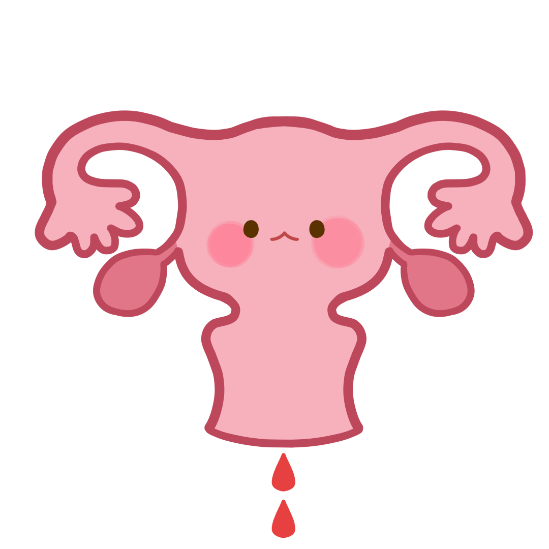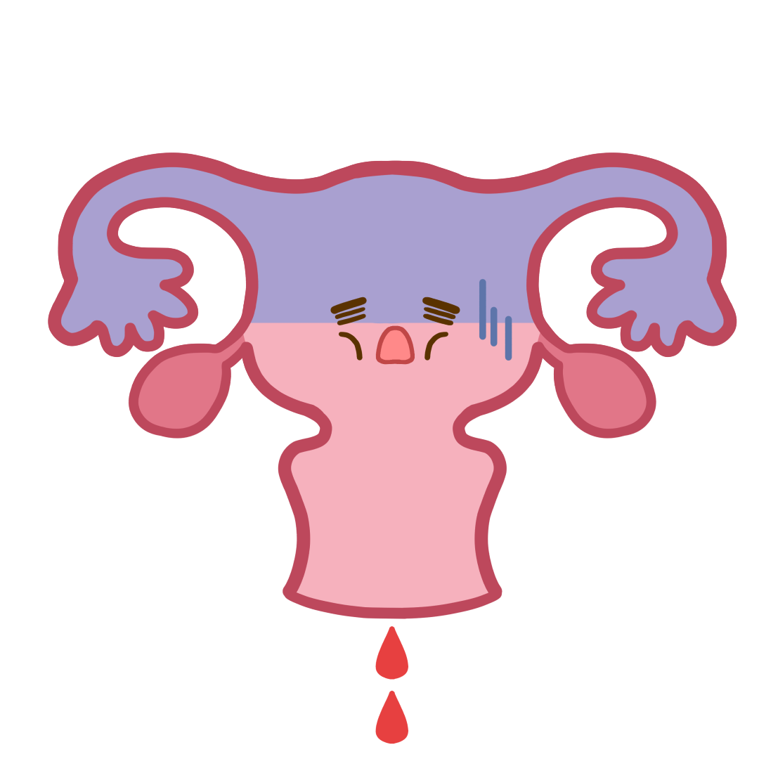 生理中の様子をデフォルメして描いた子宮のフリーイラストです。