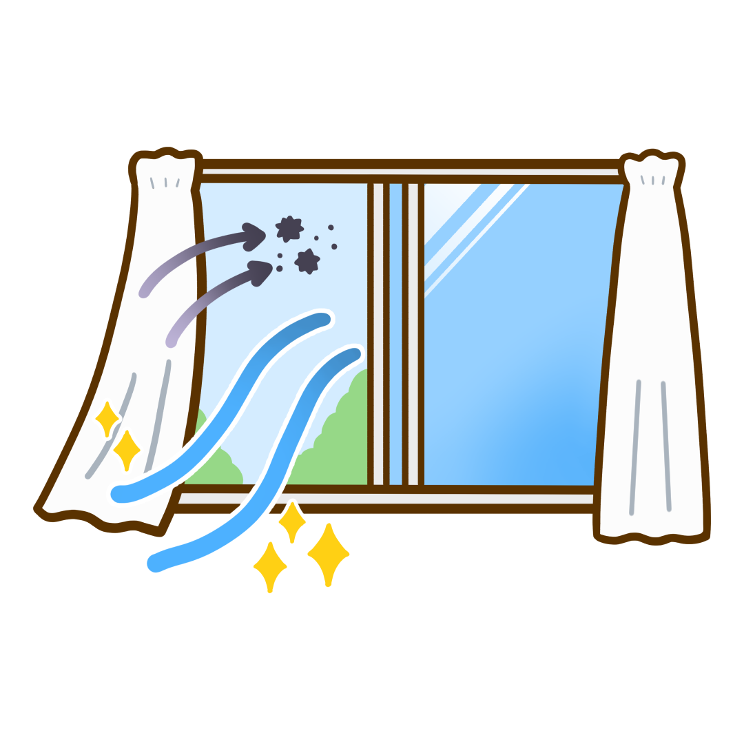 換気をする窓のかわいいフリーイラストです。