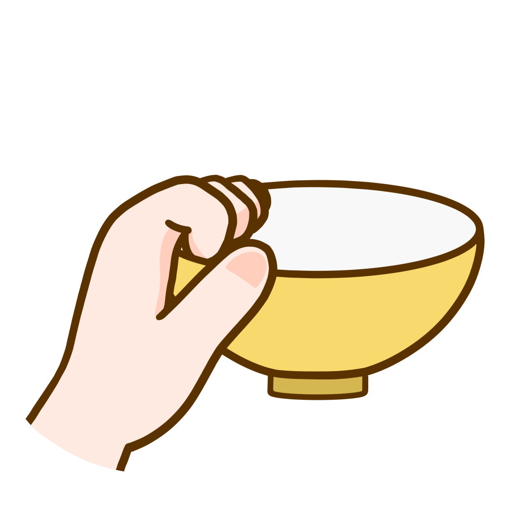 マナーの悪いお茶碗の持ち方 「横持ち」のかわいいフリーイラストです。