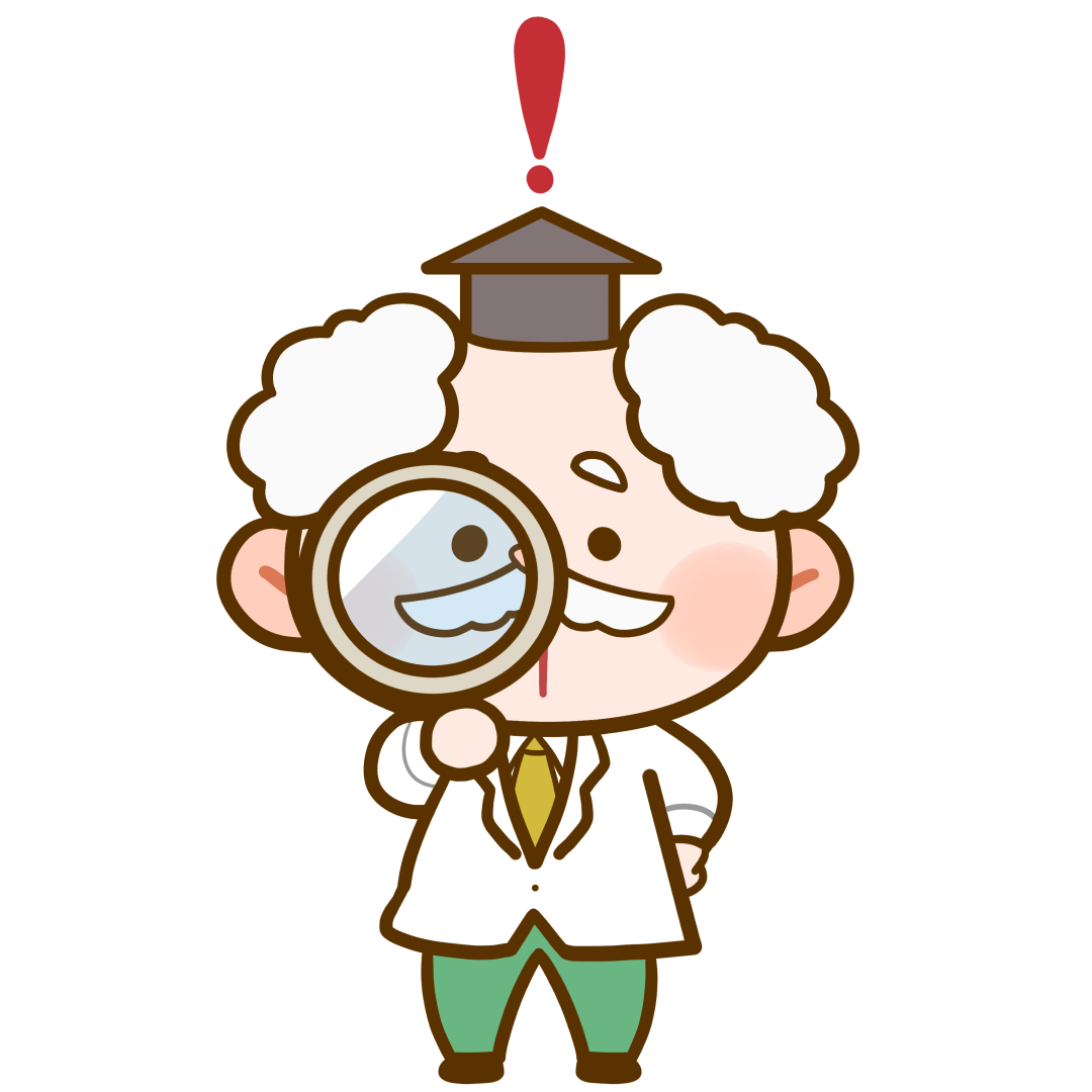 虫眼鏡でみて驚いている博士のかわいいフリーイラストです。