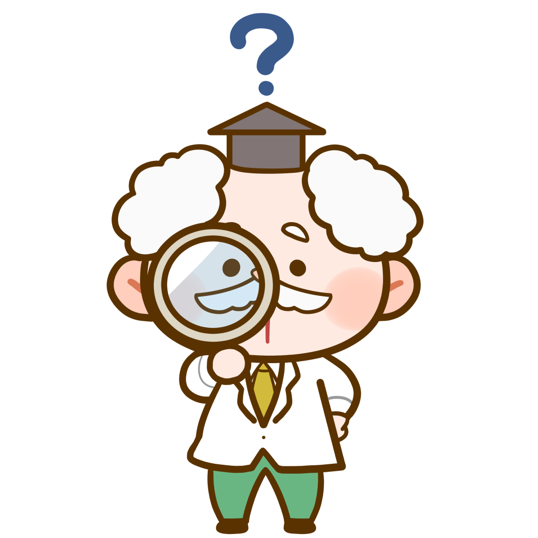 虫眼鏡でみてはてな・疑問の博士のかわいいフリーイラストです。