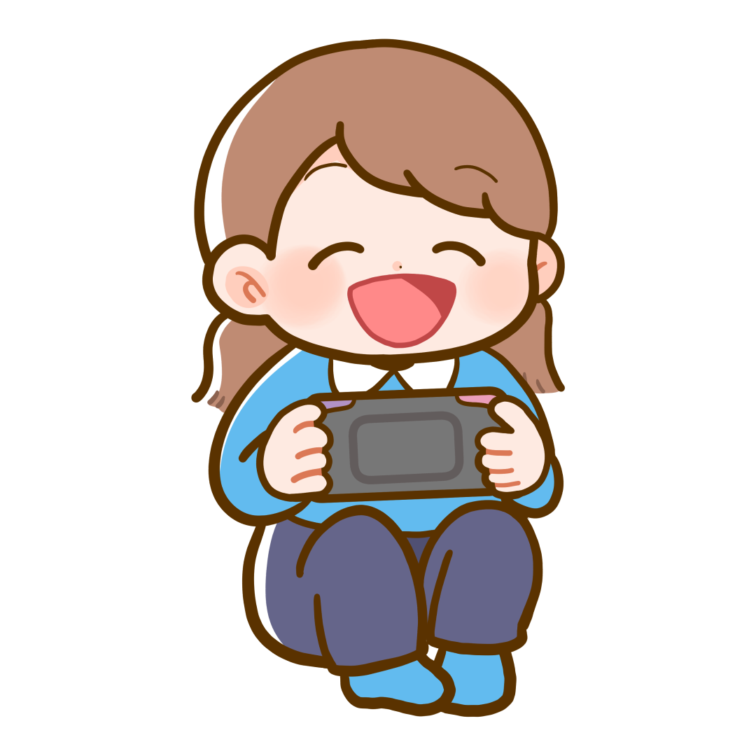 携帯ゲーム機で遊ぶ女の子のかわいいフリーイラストです。