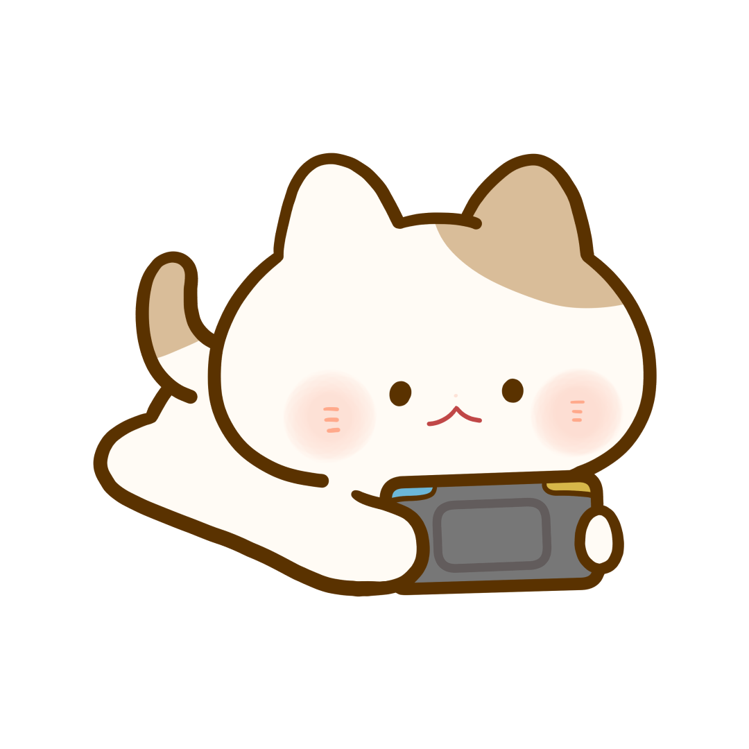 携帯ゲーム機で遊ぶネコさんのかわいいフリーイラストです。