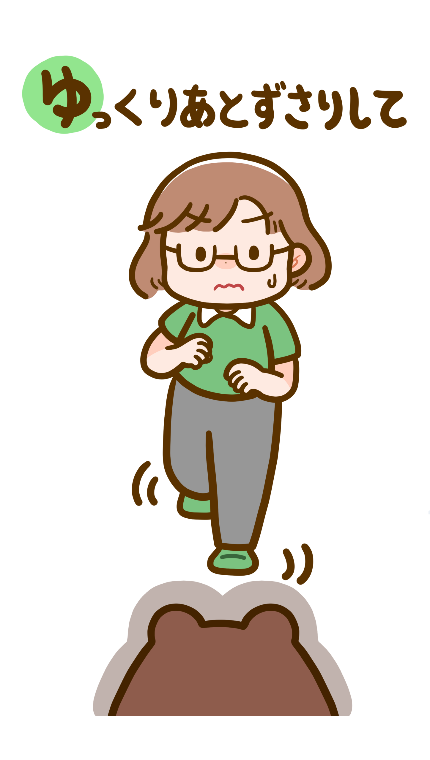 熊と出会った時の約束 「あさはゆき」のゆ:ゆっくりあとずさりしてのフリーイラストです。