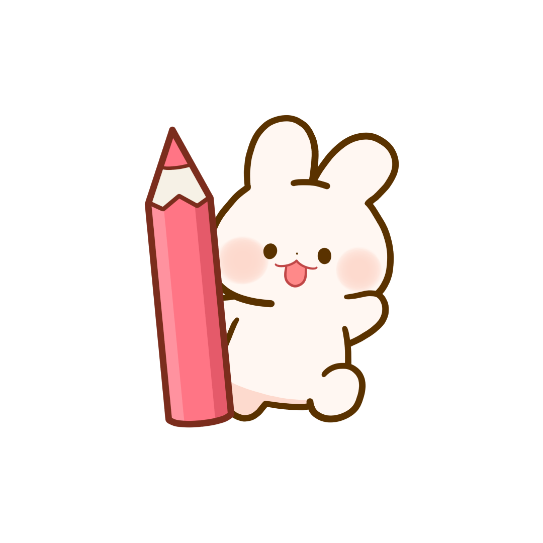 鉛筆(えんぴつ)を持ったうさぎさんのかわいいフリーイラストです。