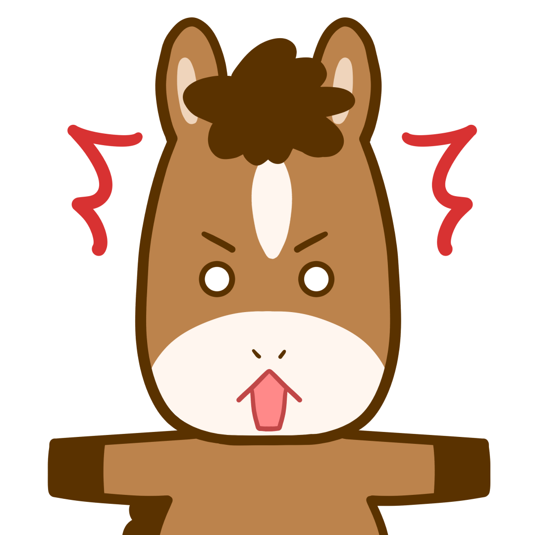 びっくりした表情のうまさん(馬・午)のかわいいフリーイラストです。