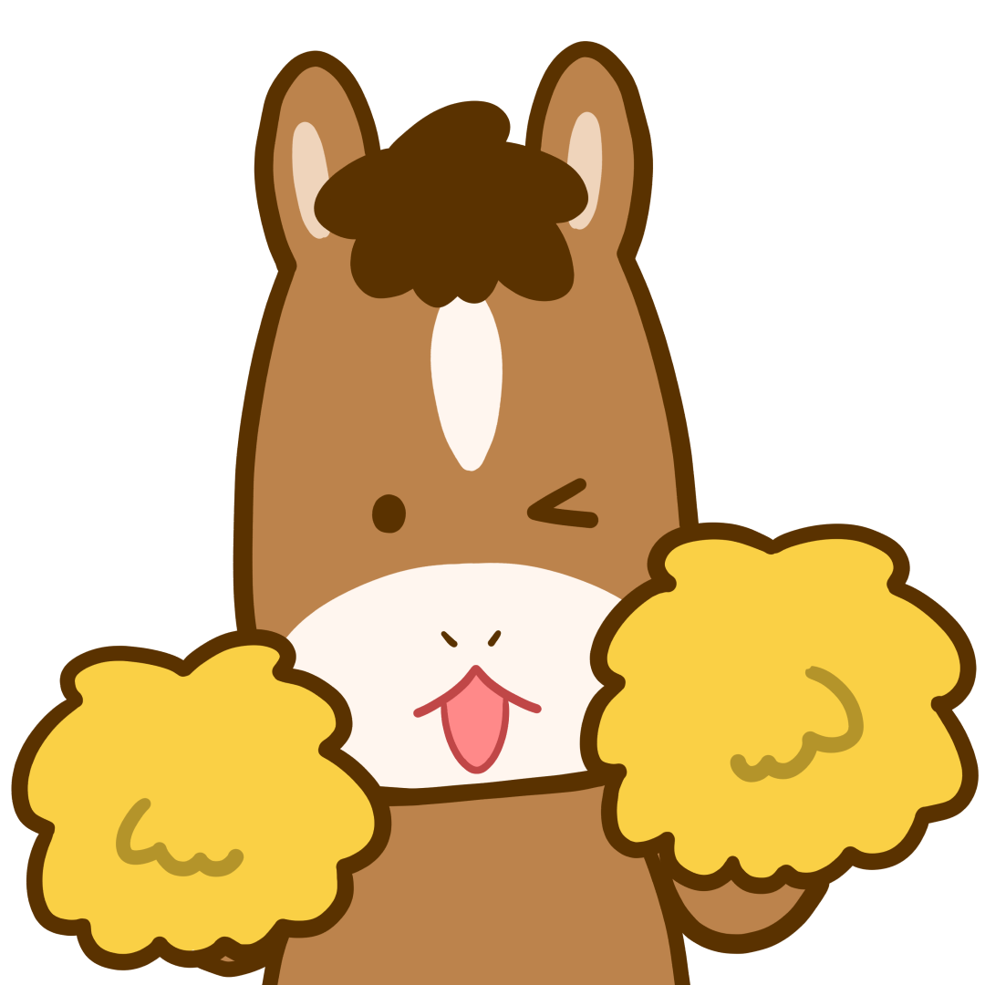 ポンポンをもって元気に応援をするうまさん(馬・午)のかわいいフリーイラストです。