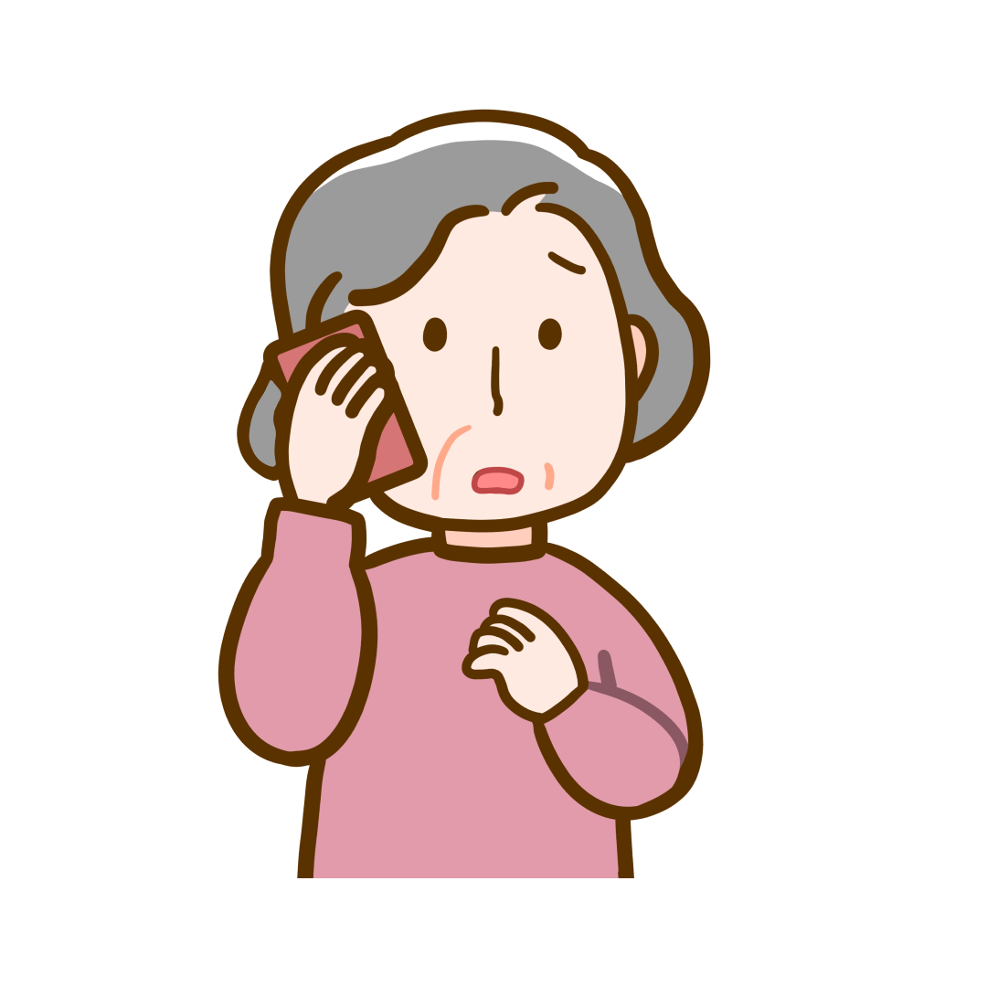 電話相談をするシニア(女性)のかわいいフリーイラストです。